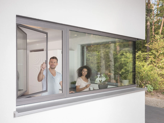 Der Insektenschutz-Spannrahmen lässt frische Luft herein, sorgt für verlässlichen Schutz vor Insekten und ermöglicht trotzdem eine komfortable Bedienung des Fensters.